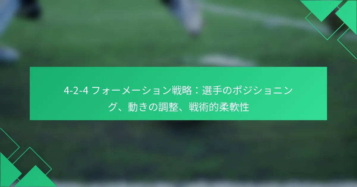 4-2-4フォーメーションは、4人のディフェンダー、2人のミッドフィルダー、4人のフォワードを特徴とするダイナミックなセットアップで、攻撃的なアグレッションと守備の堅実さのバランスを取っています。選手間の効果的な動きの調整は、得点機会を創出しつつ、堅牢な守備構造を確保するために不可欠です。さらに、このフォーメーション内の戦術的柔軟性により、チームは試合のダイナミクスや相手の特性に基づいて戦略を調整でき、全体的なパフォーマンスを向上させます。