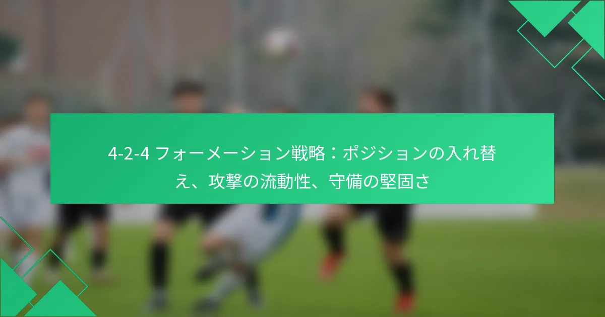 4-2-4フォーメーションは、サッカーにおけるダイナミックな戦術的セットアップであり、攻撃力と守備の組織をバランスよく保ち、4人のディフェンダー、2人のセンターミッドフィールダー、4人のフォワードで構成されています。このフォーメーションは、ボール保持のプレーを促進するだけでなく、効果的なプレス戦術や迅速なカウンターアタックの手法を可能にし、チームが相手を妨害し、得点チャンスを効率的に捉えることを可能にします。