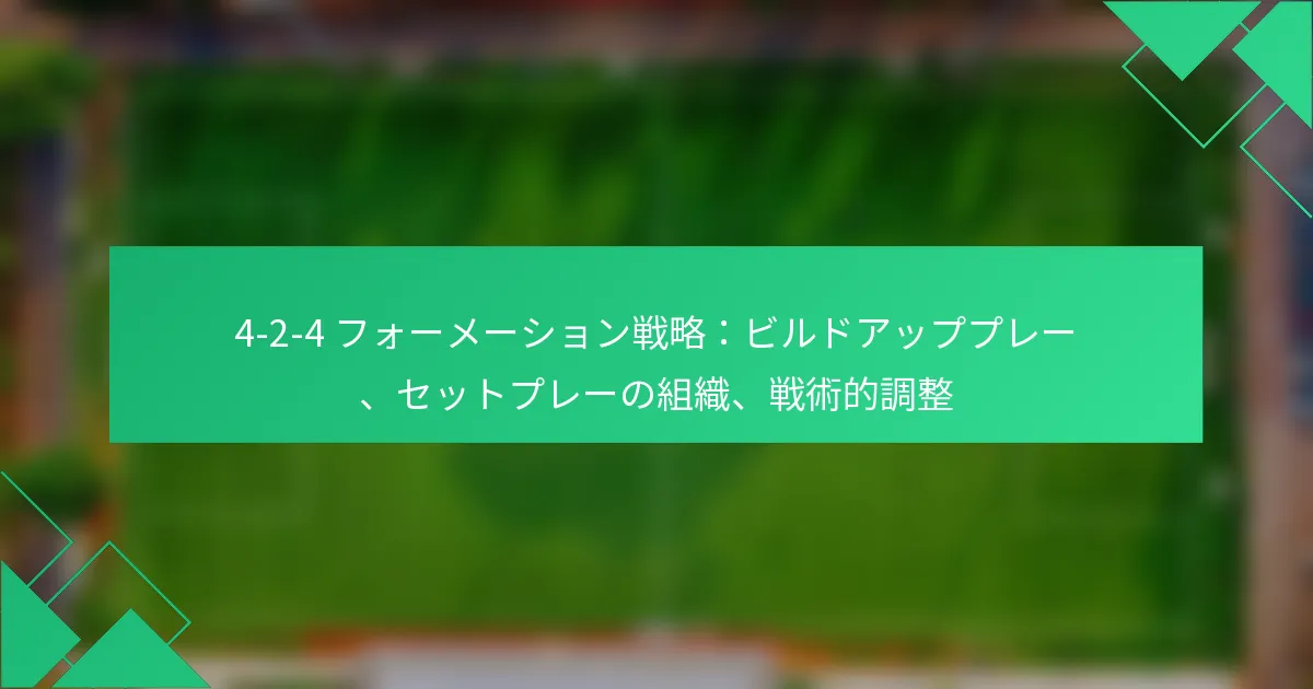 4-2-4フォーメーションは、強力な守備ラインと攻撃的な前線をバランスよく配置した、サッカーにおける動的な戦術セットアップです。守備者、中盤、フォワードの役割を明確に定義することで、チームは戦術的な一貫性を達成し、ライン間のシナジーを高め、堅実な守備と流動的な攻撃プレーの両方を可能にします。