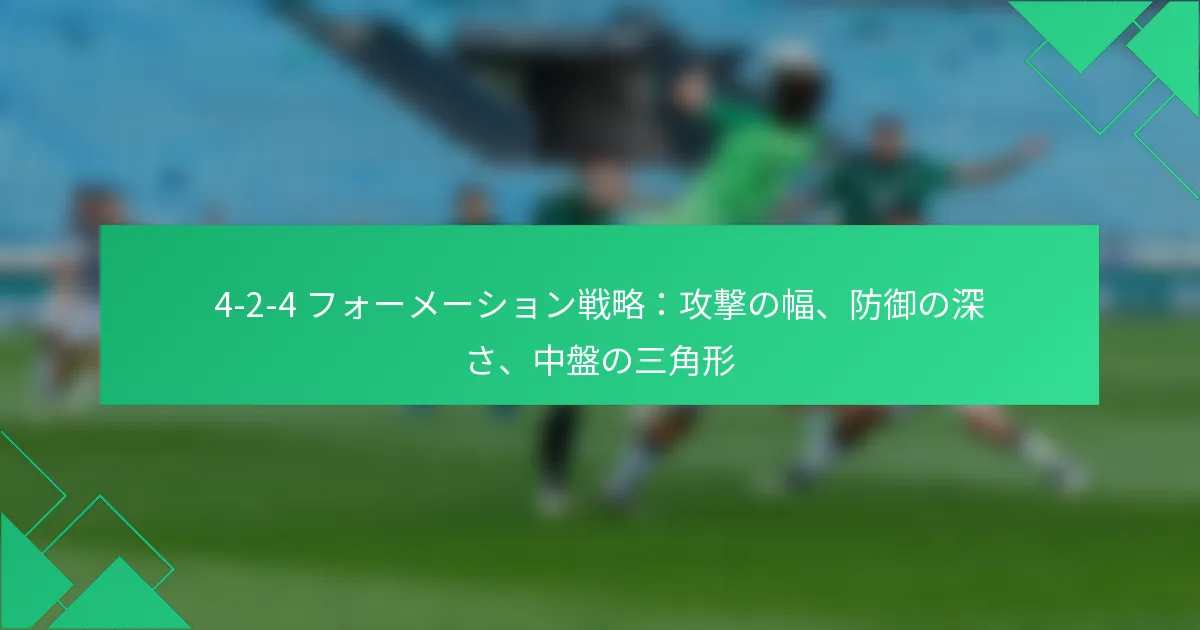 4-2-4フォーメーションは、4人のディフェンダー、2人のセンターミッドフィールダー、4人のフォワードで構成されるサッカーの戦術的な配置です。このフォーメーションは、堅固な守備構造を維持しながら攻撃的なプレーを強調しており、ボール支配を支配し、得点機会を創出しようとするチームに人気の選択肢となっています。