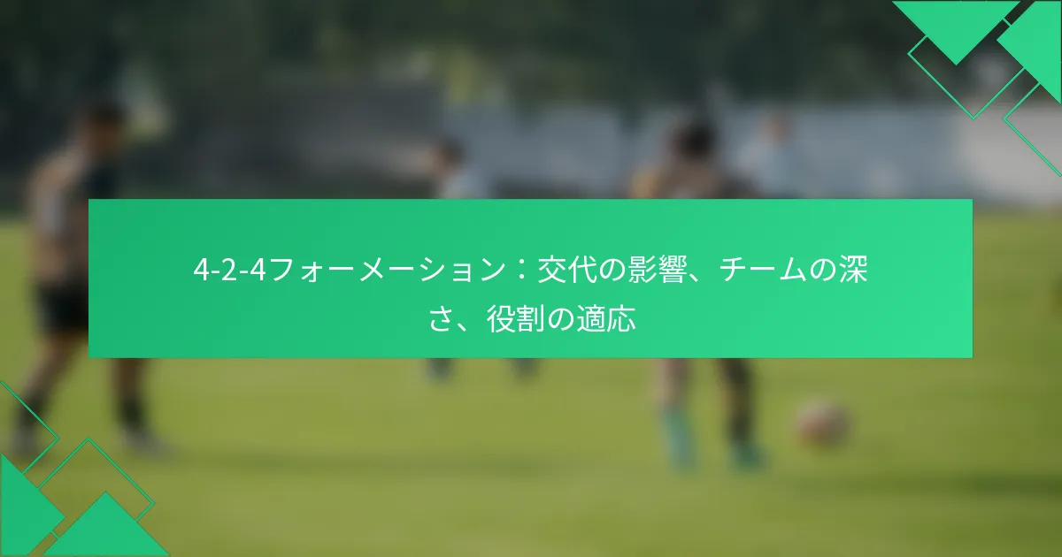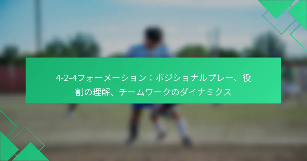 4-2-4フォーメーションは、サッカーにおけるダイナミックな戦術的セットアップであり、攻撃力と守備の安定性のバランスを取ることで、若者の育成に最適です。選手の役割と責任を明確に定義することで、このフォーメーションはスキルの向上を促進し、チームワークを育むことができ、若い選手が貴重な戦術的意識とフィールドでの適応力を得ることを可能にします。