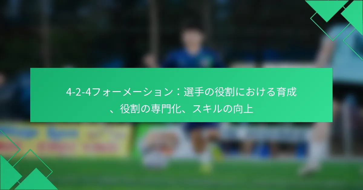 4-2-4フォーメーションにおけるスキルを向上させるためには、ターゲットを絞ったトレーニングドリルを通じて特定の選手の役割を発展させ、戦術的理解を育むことに焦点を当てます。このアプローチは、ポジショナル意識、コミュニケーションスキル、プレッシャー下での意思決定を強調し、このフォーメーションでの成功に不可欠です。