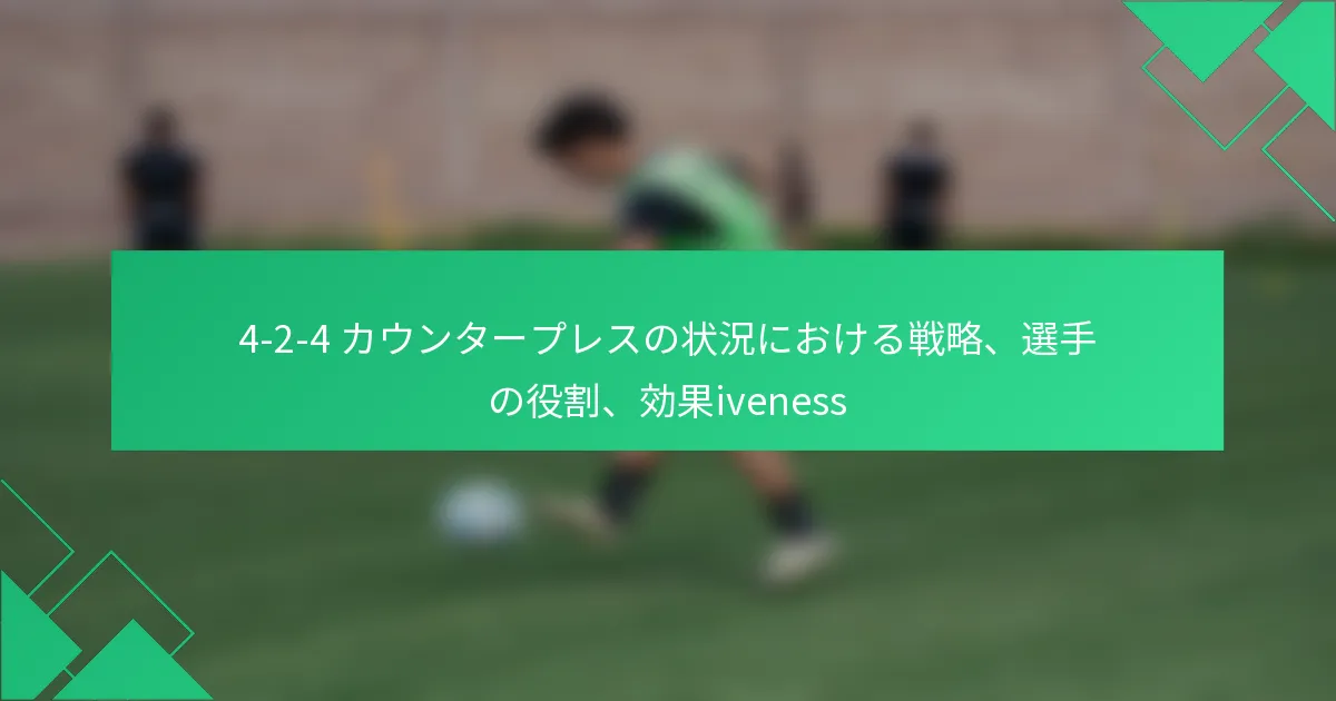 カウンタープレス時に4-2-4フォーメーションを使用するための主要な戦略は何ですか? カウンタープレス時の4-2-4フォーメーションにおける選手の役割は何ですか? 他のフォーメーションと比較して、カウンタープレスにおける4-2-4フォーメーションの効果はどのくらいですか? カウンタープレスにおける4-2-4フォーメーションを最適化するための高度な戦術は何ですか?