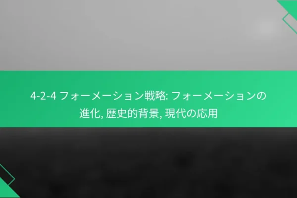 4-2-4フォーメーションは、4人のディフェンダー、2人のセンターミッドフィールダー、4人のフォワードを組み合わせた戦術的なセットアップで、攻撃と守備のプレーのバランスを促進します。その進化は、サッカー戦略の変化する風景を反映しており、現代のコーチング哲学に適応しつつ、20世紀中頃における変革的アプローチとしての歴史的な重要性を維持しています。 4-2-4フォーメーションの主な特徴は何ですか? 4-2-4フォーメーションは、4人のディフェンダー、2人のセンターミッドフィールダー、4人のフォワードを特徴とするバランスの取れたアプローチが特徴です。このセットアップは、攻撃的なプレーと守備の安定性の両方を強調し、チームが試合の流れに応じて戦略を適応させることを可能にします。 サッカーにおける4-2-4フォーメーションの定義 4-2-4フォーメーションは、後方に配置された4人のディフェンダー、主に守備と攻撃の両方をサポートする2人のミッドフィールダー、得点に焦点を当てる4人のフォワードで構成されています。この構造は、強力な攻撃の存在感を生み出しながら、堅固な守備ラインを維持します。このフォーメーションは、その柔軟性で知られており、チームが攻撃戦略と守備戦略をシームレスに切り替えることを可能にします。 歴史的に、4-2-4は20世紀中頃に特に南アメリカで注目を集め、チームが攻撃能力を高めるために利用しました。その進化は、サッカー戦術の変化を反映しており、試合のペースとフィジカリティの増加に適応しています。 4-2-4の核心的戦術原則 4-2-4フォーメーションの核心的な戦術原則は、攻撃と守備のバランスを維持することにあります。2人のセンターミッドフィールダーは、守備と攻撃をつなぐ重要な役割を果たし、しばしば2つのフェーズ間を迅速に移行します。このフォーメーションは、攻撃に幅を持たせ、フランクを利用して相手の守備を引き伸ばすことを奨励します。 守備においては、4人のディフェンダーが堅固な構造を提供し、ミッドフィールダーは必要に応じてサポートのために下がります。この二重の役割は戦術的な柔軟性を可能にし、チームが相手の強みと弱みに基づいてアプローチを適応させることを可能にします。 フォーメーションにおける選手の役割と責任 ディフェンダー:攻撃をブロックし、空中戦を制し、後方からプレーを開始する責任があります。 センターミッドフィールダー:守備と攻撃の間のピボットとして機能し、テンポをコントロールし、ボールを効果的に配分します。 フォワード:得点に焦点を当て、得点機会を創出し、相手の守備にプレッシャーをかけます。 4-2-4フォーメーションの各選手には、全体のチーム戦略に貢献する特定の責任があります。ディフェンダーは形を維持するために効果的にコミュニケーションを取る必要があり、ミッドフィールダーは守備とカウンターアタックを展開できる柔軟性が求められます。フォワードはスペースを利用し、チャンスを得点に変える役割を担います。 4-2-4フォーメーションの視覚的表現 ポジション 選手の役割 ディフェンダー1 センターバック ディフェンダー2 センターバック ディフェンダー3 右サイドバック ディフェンダー4 左サイドバック ミッドフィールダー1 ディフェンシブミッドフィールダー ミッドフィールダー2 センターミッドフィールダー フォワード1 右ウィンガー フォワード2 左ウィンガー フォワード3 ストライカー フォワード4 セカンドストライカー 4-2-4フォーメーションの一般的なバリエーション 4-2-4フォーメーションの一般的なバリエーションには、戦術的なニーズに基づく選手のポジショニングや役割の調整が含まれます。一部のチームは、1人のフォワードをミッドフィールダーの役割にシフトさせることで、より守備的なアプローチを選択し、4-3-3のセットアップを作成することがあります。他のチームは、ウィンガーを高い位置に押し上げることで攻撃を強調するかもしれません。 これらの適応により、チームはリードを守る必要がある場合や試合を追いかける必要がある場合など、さまざまな試合状況に対応できます。コーチは、これらのバリエーションを試して、チームの強みと相手の弱点に最も効果的なバランスを見つけることがよくあります。 4-2-4フォーメーションはどのように進化してきたのか? 4-2-4フォーメーションは、その誕生以来、戦術的アプローチやコーチング哲学の変化を反映して大きく変化してきました。最初は守備と攻撃のバランスを取るために設計されていましたが、現代サッカーのダイナミックなプレースタイルに対応するための適応が見られます。 4-2-4フォーメーションの起源 4-2-4フォーメーションは、20世紀中頃に主に南アメリカで登場しました。これは、より攻撃的な戦略を必要とする反応として開発され、守備の安定性を維持しました。 このフォーメーションは通常、4人のディフェンダー、2人のセンターミッド
