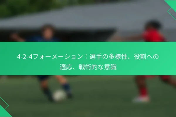4-2-4フォーメーションの試合中の調整には、フォワードを1人下げてミッドフィールドを強化するためにより守備的なセットアップに移行したり、相手の強みに基づいてプレーの幅を調整したりすることが含まれます。コーチは、選手が柔軟に対応し、試合中に効果的にコミュニケーションを取ることを奨励し、相手チームの弱点を突くためのリアルタイムの戦術的変更を行うことができるようにするべきです。