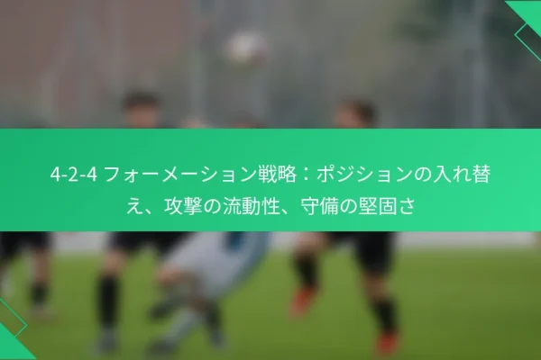 4-2-4フォーメーションは、攻撃力と守備の安定性をバランスよく保つダイナミックな戦術アプローチです。4人のディフェンダー、2人のセンターミッドフィールダー、4人のフォワードを活用することで、チームは効果的にボールを保持し、ペースを支配し、試合のテンポをコントロールすることができ、ボール保持の向上と戦略的な利点をもたらします。 サッカーにおける4-2-4フォーメーションとは? 4-2-4フォーメーションは、堅固な守備構造を維持しながら攻撃的なプレーを強調するサッカーの戦術的なセットアップです。4人のディフェンダー、2人のセンターミッドフィールダー、4人のフォワードで構成されており、チームは試合のペースを支配し、テンポをコントロールすることができます。 4-2-4フォーメーションの定義と構造 4-2-4フォーメーションは、攻撃と守備のバランスが特徴です。4人のディフェンダーが強力なバックラインを提供し、2人のミッドフィールダーが守備と攻撃のリンク役を果たします。4人のフォワードは複数の攻撃オプションを生み出し、ダイナミックなプレーと相手の守備へのプレッシャーを可能にします。 このフォーメーションは、以下のように視覚的に表現できます: ポジション 選手数 ディフェンダー 4 ミッドフィールダー 2 フォワード 4 4-2-4フォーメーションにおける主要な選手の役割 4-2-4フォーメーションでは、各選手の役割がバランスと効果を維持するために重要です。ディフェンダーは相手の攻撃を止め、後方からプレーを開始する役割を担います。ミッドフィールダーは試合のテンポをコントロールし、ボールを配分し、守備と攻撃の両方をサポートします。 ディフェンダー:相手をマークし、ボールをクリアする責任があります。 ミッドフィールダー:プレーメーカーとして、守備と攻撃をつなぎます。 フォワード:ゴールを狙い、相手の守備にプレッシャーをかけます。 4-2-4フォーメーションの歴史的背景と進化 4-2-4フォーメーションは、20世紀中頃、特に1950年代と1960年代に注目を集めました。ブラジルのようなチームによって広められ、ワールドカップでの勝利に大きく貢献しました。このフォーメーションは、フィールドの幅を利用して得点機会を生み出すことを可能にしました。 年月が経つにつれ、4-2-4は選手のフィットネス、戦術、全体的なプレースタイルの変化に適応して進化してきました。より現代的なフォーメーションに取って代わられたものの、その原則は現代の戦術に影響を与え続けています。 4-2-4フォーメーションの視覚的表現 4-2-4フォーメーションの視覚的な図は、選手の配置を示すのに役立ちます。通常、ディフェンダーは一直線に配置され、ミッドフィールダーは少し前に、フォワードは前方にペアで配置されます。このレイアウトはスペースを最大化し、守備と攻撃の間で迅速な移行を可能にします。 4-2-4フォーメーションの一般的なバリエーション 4-2-4の基本構造は一貫していますが、チームはしばしば自分たちの強みや弱みに応じて適応します。バリエーションには、ミッドフィールダーの役割をより守備的または攻撃的に変更したり、フォワードの配置を調整して異なる攻撃角度を生み出したりすることが含まれます。 4-2-2-2:フォワードに近い位置でプレーする2人のミッドフィールダーを持つ、よりコンパクトなバージョン。 4-4-2:より守備的なセットアップにシフトし、ミッドフィールダーに追加のサポートを提供します。 4-3-3:ミッドフィールダーのコントロールと攻撃の幅を強調する適応。 4-2-4フォーメーションはどのようにボールを保持するのか? 4-2-4フォーメーションは、効果的な選手の配置、戦略的なパス、ミッドフィールダーの重要な役割を強調することでボールを保持します。このセットアップにより、チームはペースを支配し、試合のテンポをコントロールし、ボール保持を強化し、戦術的な利点を生み出します。 効果的なボール保持のための選手の配置 4-2-4フォーメーションでは、選手の配置がボール保持にとって重要です。4人のフォワードと2人のミッドフィールダーがコンパクトな構造を作り、迅速なボール移動とサポートを可能にします。各選手は、パスのオプションを最大化するために、チームメイトや相手に対する自分の配置を意識する必要があります。 選手間の効果的なスペーシングは、相手を引き伸ばし、ギャップを生み出すのに役立ちます。フォワードはボールを受け取るために自分を配置し、同時にミッドフィールダーエリアからディフェンダーを引き離す必要があります。この配置はボール保持を助けるだけでなく、攻撃的なプレーの機会を開きます。 選手は常にボールの位置に基づいて自分の位置を調整し、パスを受けるために常に利用可能であることを確認する必要があります。このダイナミックな動きは、ボール保持を維持し、相手チームにプレッシャーをかけるために不可欠です。 4-2-4フォーメーション内