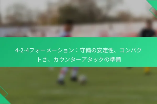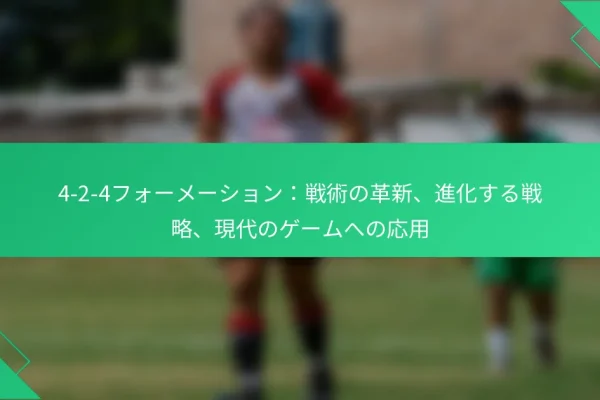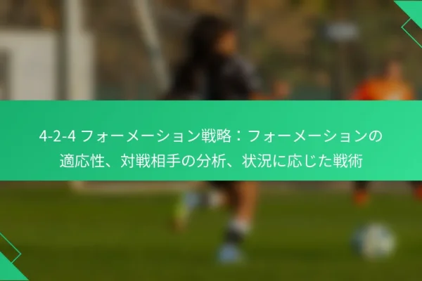 4-2-4フォーメーションは、サッカーにおける戦術的なセットアップで、堅固なディフェンスと攻撃的なアプローチを組み合わせたもので、4人のディフェンダー、2人のセンターミッドフィールダー、4人のフォワードで構成されています。その本質的な適応性により、チームは相手の強みと弱みを考慮して戦略を調整し、さまざまな試合状況でのパフォーマンスを最適化することができます。この戦略的な柔軟性は、明確な選手の役割と効果的なトランジションによってさらに強化され、チームは試合を通じて攻撃の圧力と守備の安定性を維持することができます。 4-2-4フォーメーションとは何か、その主な特徴は? 4-2-4フォーメーションは、4人のディフェンダー、2人のセンターミッドフィールダー、4人のフォワードで構成されるサッカーの戦術的なセットアップです。このフォーメーションは、構造化されたディフェンスを維持しながら攻撃的なプレーを強調し、チームが相手の強みと弱みに基づいて戦略を適応させることを可能にします。 4-2-4フォーメーションの定義と歴史的背景 4-2-4フォーメーションは20世紀中頃に登場し、その攻撃力と攻守のバランスから人気を博しました。特に1970年のワールドカップではブラジルなどのチームによって使用され、その高い緊張感のある試合での効果を示しました。 このフォーメーションは、チームが積極的にプレスをかけつつ、十分な守備のカバーを提供することを可能にします。その歴史的な進化は、サッカー戦術の流動的でダイナミックなプレーへの移行を反映しており、数十年にわたる相手のスタイルの変化に適応しています。 4-2-4における主な構成要素と選手の役割 4-2-4フォーメーションでは、4人のディフェンダーは通常、2人のセンターバックと2人のフルバックで構成され、相手の攻撃を阻止しミッドフィールダーをサポートする役割を担います。2人のセンターミッドフィールダーは、ディフェンスと攻撃をつなぐ重要な役割を果たし、ボールの配分や守備の任務を担当します。 4人のフォワードは、2人のウィンガーと2人のストライカーを含みます。ウィンガーは相手のディフェンスを広げ、幅を提供することが期待され、ストライカーは得点機会を決めることに焦点を当てます。各選手の役割は、試合中のフォーメーションのバランスと効果を維持するために重要です。 4-2-4フォーメーションの利点 4人のフォワードによる強力な攻撃力で、複数の得点機会を創出。 試合のダイナミクスに基づいて攻撃と守備の戦略を切り替える柔軟性。 選手間のチームワークとコミュニケーションを促進し、全体的なパフォーマンスを向上。 特に広いエリアで相手の弱点を突くのに効果的。 4-2-4フォーメーションは、ディフェンスを圧倒することができ、高圧の状況に苦しむチームに対して特に効果的です。さらに、守備から攻撃への迅速なトランジションを可能にし、カウンターアタックを活用します。 4-2-4フォーメーションに関する一般的な誤解 攻撃的なチームにのみ適しており、効果的に守備できない。 すべてのポジションに高度なスキルを持つ選手が必要。 時代遅れで現代サッカーには適用できない。 4-2-4フォーメーションは攻撃を強調しますが、適切なポジショニングと規律を持つことで堅固な守備プレーに適応できます。さらに、チームは個々の才能よりもチームワークと戦術的な意識に焦点を当てることで、さまざまなスキルレベルの選手でこのフォーメーションを実施できます。 時代遅れと見なされることがあっても、多くの成功したチームが4-2-4のバリエーションを利用しており、現代サッカー戦術におけるその関連性を示しています。これらの誤解を理解することで、コーチや選手はさまざまな試合状況でフォーメーションを効果的に実施することができます。 4-2-4フォーメーションはどのように異なる相手に適応できるか? 4-2-4フォーメーションは、相手のスタイルに応じて効果的に調整でき、相手の強みと弱みを分析することによって最適化されます。この適応性により、チームは各試合が提示する特定の課題に基づいてパフォーマンスを最適化できます。 相手の強みと弱みの特定 相手の強みと弱みを理解することは、効果的な試合計画において重要です。チームは、相手の攻撃戦略や守備の脆弱性など、相手のプレーのパターンを特定するために過去の試合を分析すべきです。この分析には、試合の映像や統計データのレビューが含まれることがあります。 主な強みには強力なフォワードラインや堅固なミッドフィールダーの存在が含まれる一方、弱みには守備のスピード不足やセットプレーの組織力の欠如が考えられます。これらの要素を認識することで、チームはターゲットを絞ったアプローチを策定できます。 相手の試合統計を調査して洞察を得る。 キープレーヤーとそのチーム内での役割を特定する。 相手が類似のフォーメーションに対してどのようにパフ